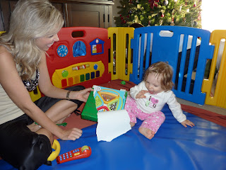 It's soooooooo cute! And it's so funny how it applies so well to so many situations. It's the universal sign for "What happened?", "I don't know" and my favorite, "It wasn't me!" You'll throw things off your high chair and shrug, "Donde esta?", you'll take a ball and throw it far and shrug, "Donde esta?", you'll loose track of a toy and you'll shrug, "Donde esta?" ... oh my goodness, how we have laughed! The other day you even said, "ta!" when you shrugged, as in, "Donde esTA?" We nearly died!